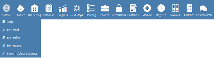 If parents do not like the default blue colour scheme of the system on the web or tablet app they can decide which colour scheme they would like to use on the system.